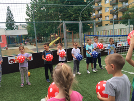 Az óvodások örömmel fogadták a szebbnél - szebb labdákat, játékokat. A nyár folyamán még több új élményt szerezve felhőtlenül, vidáman és jókedvűen játszhatnak. Sportolhatnak a színes hullahopp karikákkal, ügyességi játékokat játszhatnak a célba dobó karikákkal, versenyezhetnek egymással.